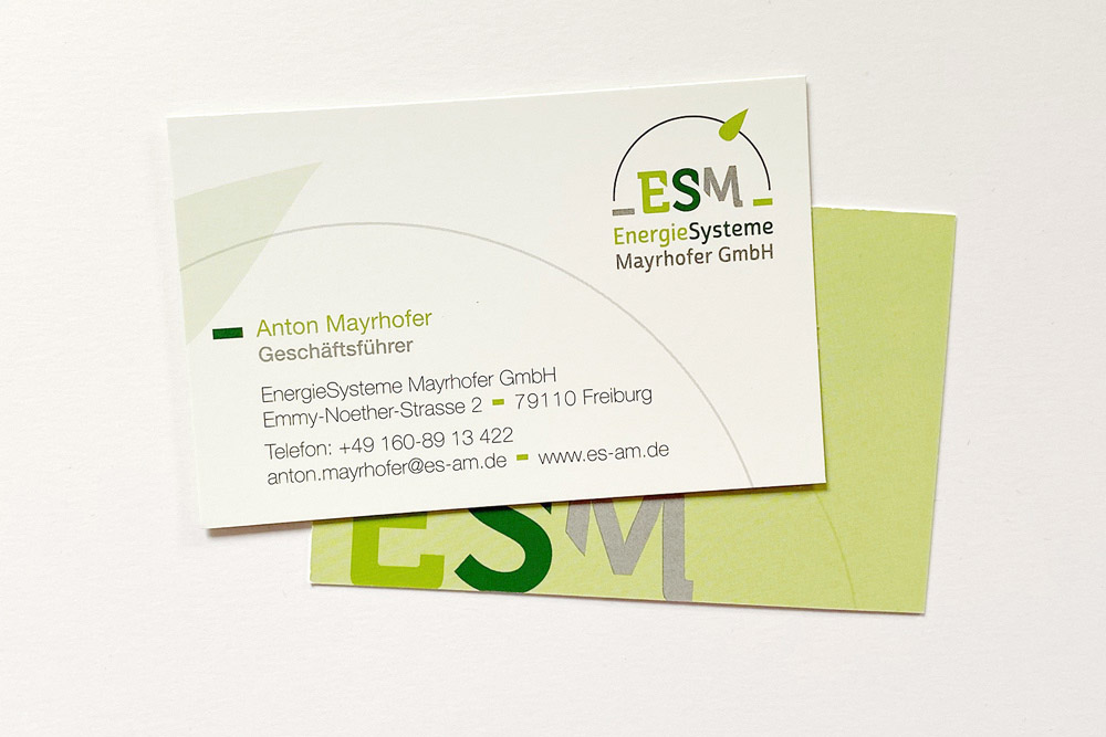 EnergieSysteme Mayrhofer GmbH Freiburg Entwicklung Logo und Visitenkarten